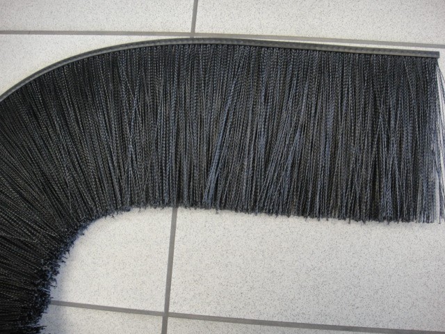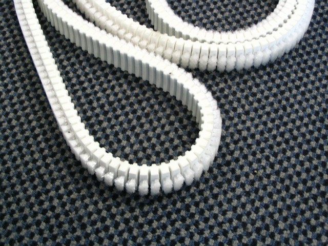 They can be made in continuous lengths of up to 250 metres with bristle heights ranging in size from 10mm up to 300mm depending on desired bristle thickness. Extruded flexible strip brush is approximately 40% lighter than traditional strip brush and won’t corrode as it is constructed entirely without the use of any metal components. It is typically designed to fit into our existing 3.2mm & 8.0mm aluminium brush holders.