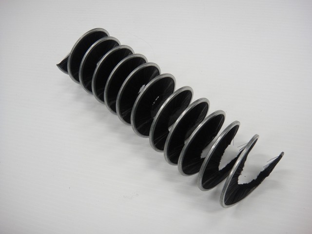 Metal Backed Strip Brushes can be wound at the desired pitch to suit any application, example – for Light work it may be preferable to spread the pitch between the strip to create a less dense fill and ultimately a more flexible brush, for Heavy work or where greater pressure is required the strips can be closely wound resulting in a more dense stiffer brush.