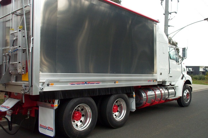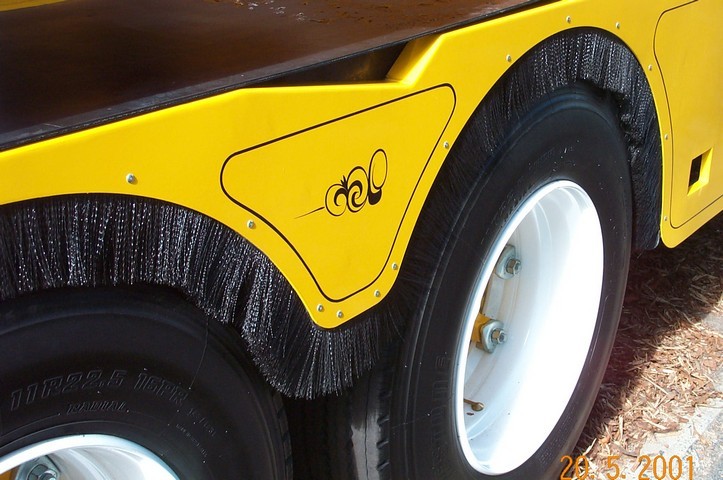 When used on truck and trailer bodies the brush directs water and dust back to the road surface below the windscreen level of other traffic and away from the truck’s mirrors.