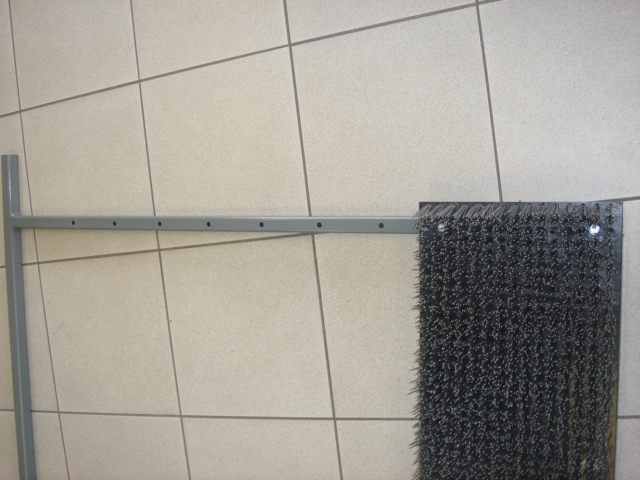 Fixed Block Brushes (Tufted) are a fixed brush that is mounted directly to a fully adjustable T shape steel frame that is then placed at the base of the handrail and uses friction of the fibres to clean built up dirt from the steps.