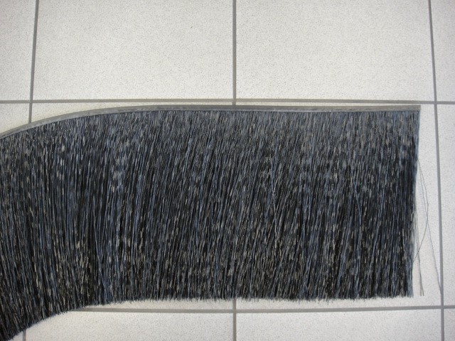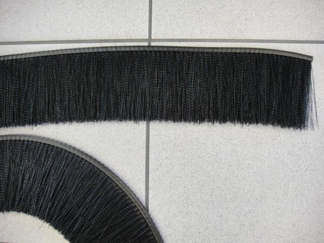 They can be made in continuous lengths of up to 250 metres with bristle heights ranging in size from 10mm up to 300mm depending on desired bristle thickness. Extruded flexible strip brush is approximately 40% lighter than traditional strip brush and won’t corrode as it is constructed entirely without the use of any metal components. It is typically designed to fit into our existing 3.2mm & 8.0mm aluminium brush holders.