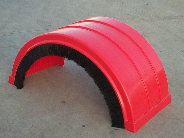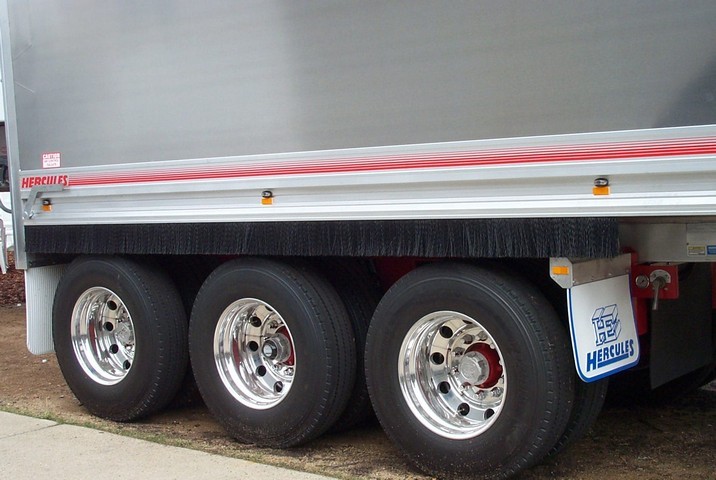 When used on truck and trailer bodies the brush directs water and dust back to the road surface below the windscreen level of other traffic and away from the truck’s mirrors.