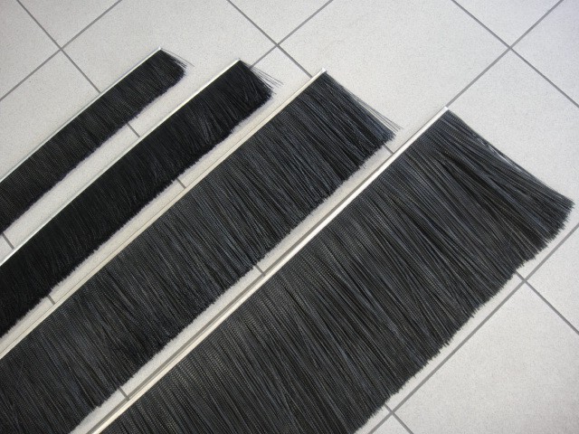 Hard polypropylene back straight strip 3000mm in length brushes are made by fusing high quality brush filaments into an extruded 8.0mm wide poly backing making the filaments become one with the backing. These brushes won't corrode as they are constructed entirely without the use of any metal parts.