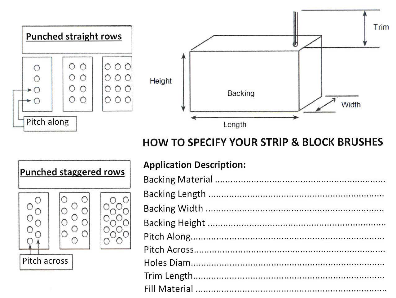 Stapled set brushes can be produced on our computer controlled brush making machines in straight or angled tufts of filament using just about any type and size of bristle material and can be made in straight lengths of up to 3000mm long and 500mm wide in various thicknesses and bristle heights.