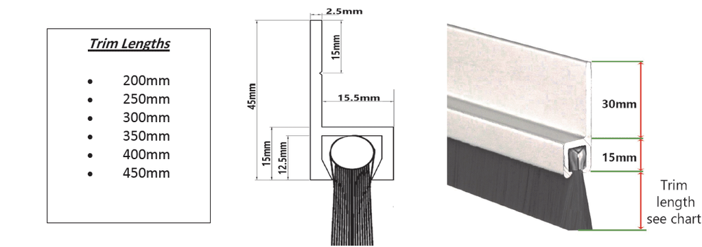 Our StoneGuard brush guarding is made by inserting a 12mm metal back strip brush into a specially designed Aluminium carrier that has a large 30mm surface area for fitting and as an added feature our design allows for simple / easy replacement of brush strips if required.